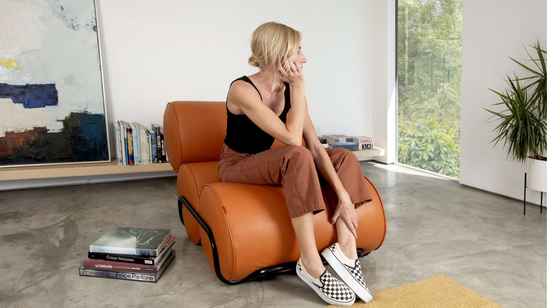 This low-profile lounge chair is not about getting up. It’s about getting down.Created to be reclined on, lived in, and played with—you’ll love admiring it from every angle.